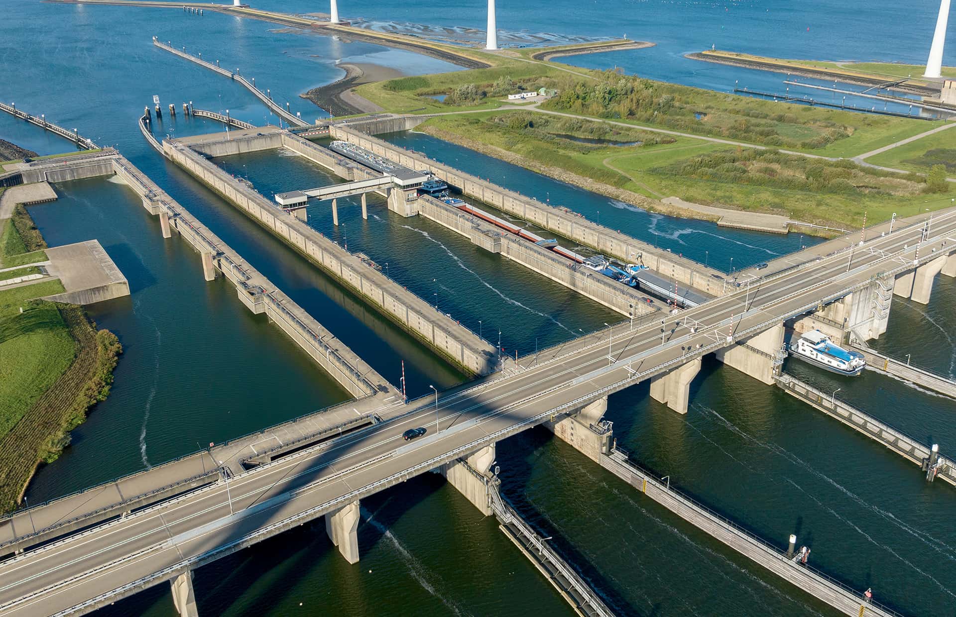 De grondige aanpassing van het complex levert een aantal voordelen op, vertelt Olivier. ‘Allereerst hebben we straks veel minder kosten voor dagelijks onderhoud. Voor de gebruikers zal het schutproces gemiddeld een kwartier sneller gaan. Vanwege de manier waarop we de zoet-zoutscheiding doen, duurt dat nu 45 minuten. Straks met het bellenscherm gaat dat dus een stuk sneller. Ook gebruiken we door de nieuwe technieken straks 25 procent minder energie.’ Al met al wordt de hele operatie een complex verhaal, verwacht Olivier. ‘Omdat we werken met de tent open, omdat we veel verschillende werksoorten bij elkaar hebben en alleen al met de afmeting van het sluizencomplex. Met 66.000 schepen per jaar is dit complex een van de economische motoren van Nederland. Samen met de combinatie ZEEKR, die bestaat uit BESIX NL, BESIX Unitec, Croonwolter&dros, DEMAKO, Iemants (Smulders) en Bosch Rexroth maken we Nederland een stukje beter. Het lijkt heel normaal dat zoiets goed gaat, maar dat is echt topsport.’