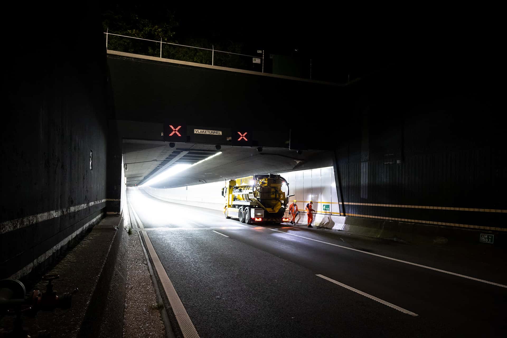 Jimmy legt uit wat er precies gaat gebeuren. ‘Het asfalt gaat eruit, tot op het beton van de tunnelbak. Dan kunnen we zien hoe het beton eraan toe is en kunnen we waar nodig reparaties uitvoeren. Vervolgens gaan we weer opbouwen. De voegovergangen tussen de tunnelelementen worden vervangen, net als de gootconstructies en we brengen een nieuwe onderlaag asfalt aan. Daarin gaan we de detectielussen opnieuw aanbrengen, die essentieel zijn voor het veilig functioneren van tunnel. En dan weer een toplaag asfalt erover. Het beton aan de tunnelwand wordt bijgewerkt en de rubberen voegen hersteld. Tot slot gaan we ook negenhonderd meter vangrail tussen de hoofdrijbanen vervangen. Op zich voldoen deze nog, maar ze worden volgens de nieuwe richtlijnen herplaatst. Hierbij worden de nog goede delen van de oude vangrail opnieuw gebruikt.’