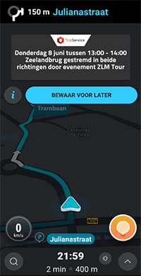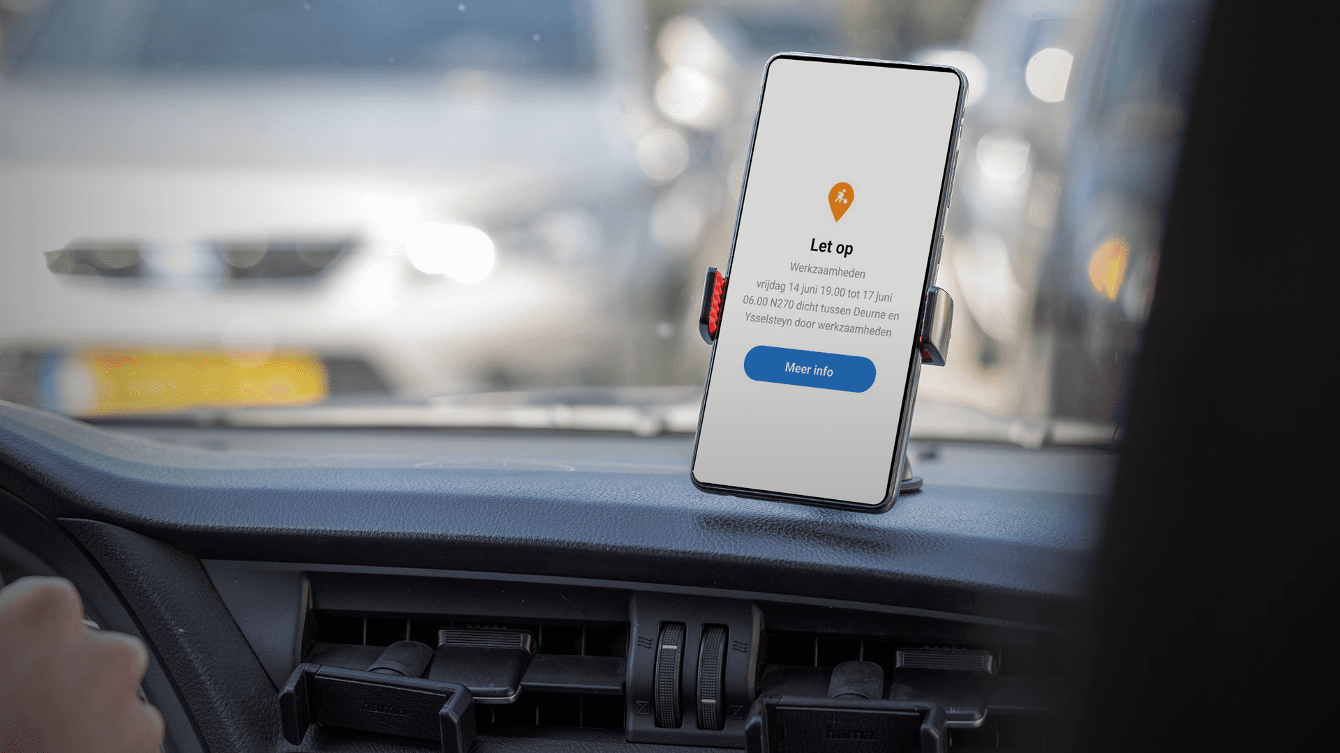 Hoe werkt een digitale vooraankondiging precies? Jop legt het uit: ‘Een digitale vooraankondiging hanteert een vast format en wordt een week voorafgaand aan een afsluiting getoond in de navigatie van weggebruikers die regelmatig op het traject rijden. Het begint altijd met de datum en tijd, gevolgd door de locatie. Wegbeheerders kunnen nu eenvoudig zelf een vooraankondiging aanmaken in Melvin, de NDW-tool waarin ook alle wegwerkzaamheden worden gemeld. Het proces is snel en simpel. Zodra Melvin de vooraankondiging heeft aangemaakt, controleer ik of alles klopt. Is het in lijn met het format en is de vooraankondiging echt nodig? Als alles in orde is, gaat alles via Melvin rechtstreeks door naar de serviceproviders ANWB, Flitsmeister en Waze.’ Het resultaat is bijvoorbeeld een melding als: ‘Van maandag 26 februari 6:00 tot en met vrijdag 1 maart 20:00 N784 tussen N311 en A12 dicht in beide richtingen door werkzaamheden’.