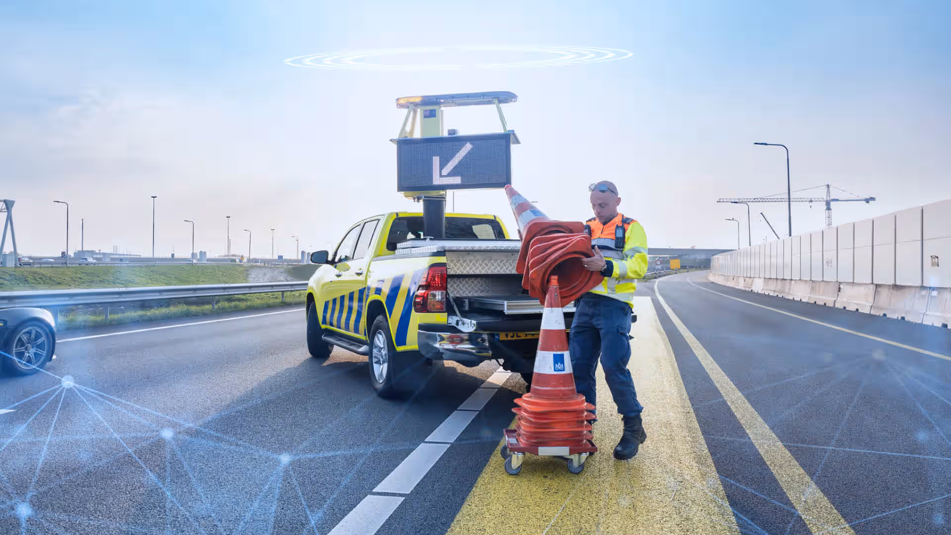 Het zijn helaas bekende problemen: bestuurders die afgeleid zijn in het verkeer, op het laatste moment invoegen of te hard rijden. Het geeft onveilige verkeerssituaties. Zeker als het gebeurt op een plek waar de weginspecteur een automobilist helpt met pech, of als er aan de weg gewerkt wordt. Om deze verkeerssituaties veiliger te maken, krijgt het naderende verkeer een veiligheidswaarschuwing zodat de bestuurder weet dat hij of zij extra alert moet zijn. En dat is nodig, want er gebeuren nog steeds ongelukken tijdens wegwerkzaamheden en met weginspecteurs. Soms is er alleen materiele schade, maar soms ook letsel.