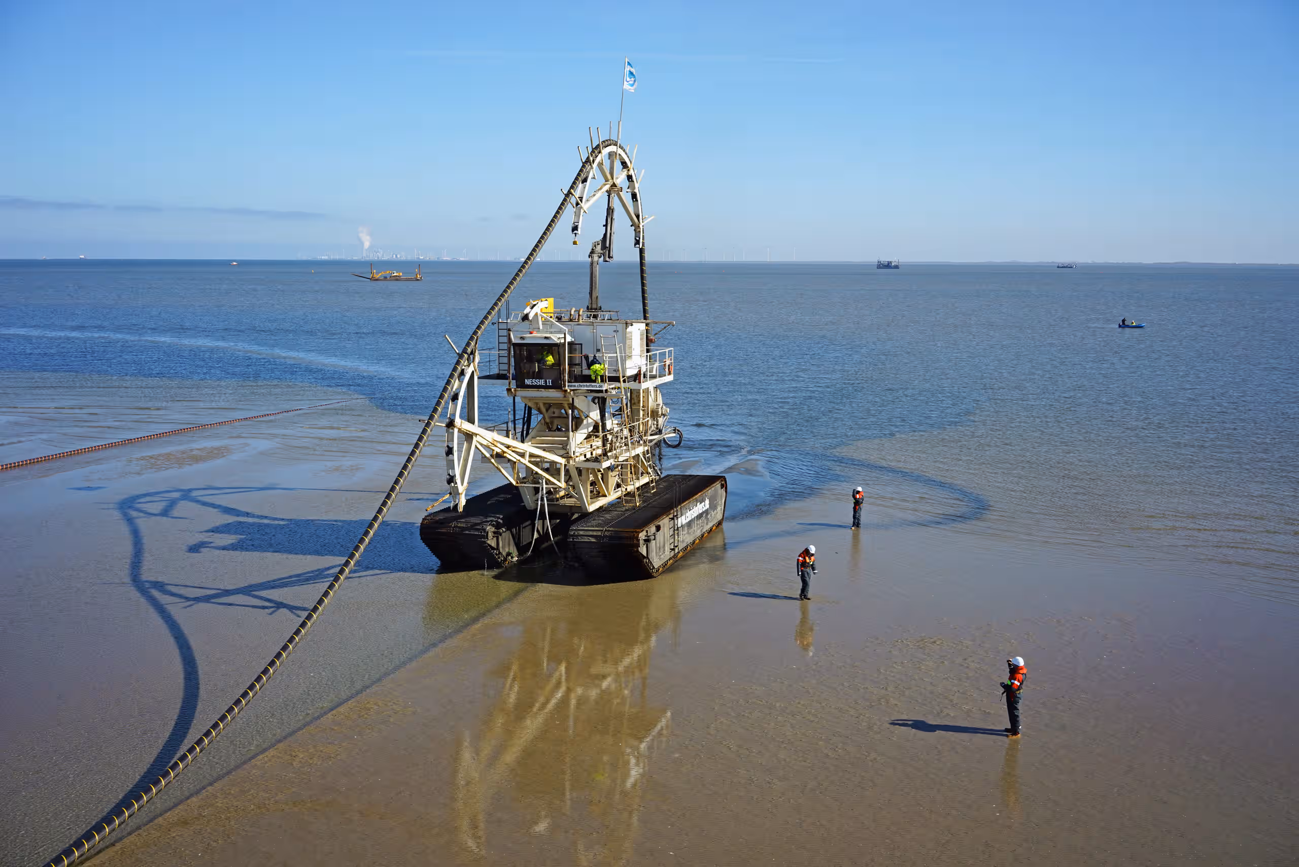 Het werken in het kwetsbare Waddengebied vraagt binnen PAWOZ om de nodige extra zorg. Olaf merkt dat hierover ook bij de regionale organisatie onderdelen Zee& Delta en Noord-Nederland van Rijkswaterstaat veel kennis is. “Dat helpt ons. Ook zijn wij niet het enige land met Waddeneilanden. Duitsland heeft ook voor ons bruikbare ervaring met projecten voor wind op zee. We werken daarom graag samen met partners over de grens. Het leukste voorbeeld daarvan is Nessie de "Wadtrencher” (zie foto bij titel van dit artikel). Dat is een voertuig met rupsbanden, dat gebruikt wordt om met minder impact kabels en leidingen aan te leggen. Een mooie mitigerende maatregel.”